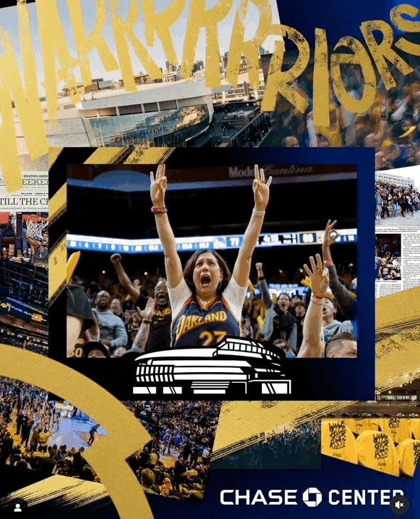 Objective: Create a distinct identity by spotlighting fan experiences, venue activations, and community engagement. The team promoted Thrive City watch parties, highlighted unique in-arena visuals like “Light the Bay,” and used custom graphics to build a cohesive brand presence. Emphasize Chase Center as more than just a basketball venue—while fostering a strong connection with the Bay Area community through local partnerships and storytelling.